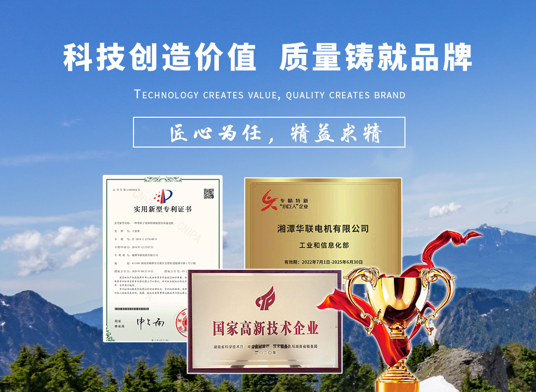 湘潭華聯電機有限公司,成立于 2010 年 7 月,坐落于中國電機搖籃湖南省湘潭市,自建面積18574.28M2的現代化新廠房。公司擁有完善的質量管理體系,被評為工業與信息化部專精特新 “小巨人”企業。 是一家專業從事高速電機、高速風機、低速大扭矩電機、磁懸浮軸承、高速電動機驅動控制系統研發、生產和銷售的高新技術企業。